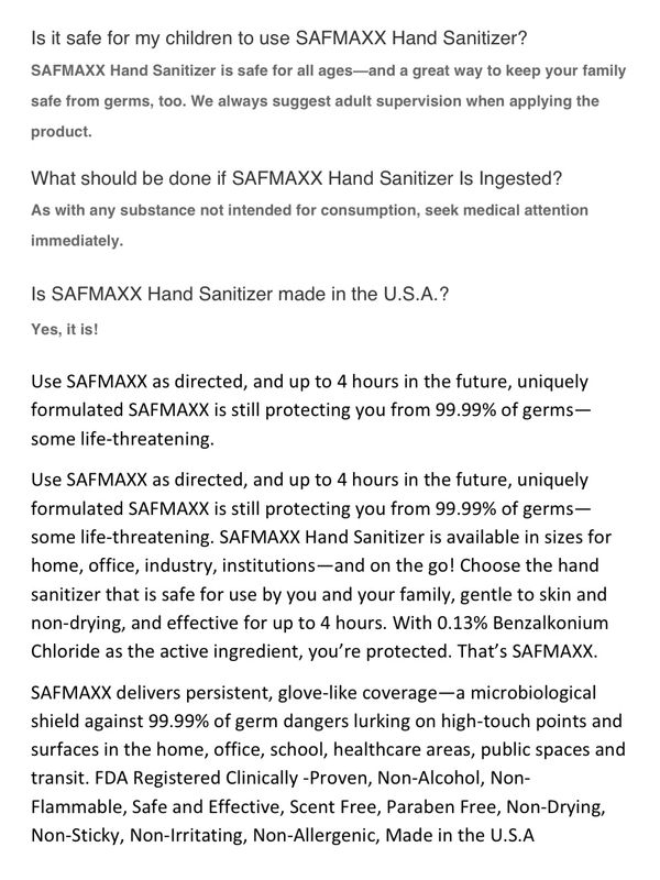 Safmaxx Works is a non-alcohol, BZK hand Sanitizer that is not Sticky, Greasy or Grimey and and is made Canton ,MS